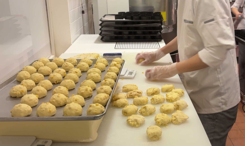 「びえいのコーンぱん」は、水分の代わりにコーンペーストや生クリームを使って焼き上げられています
