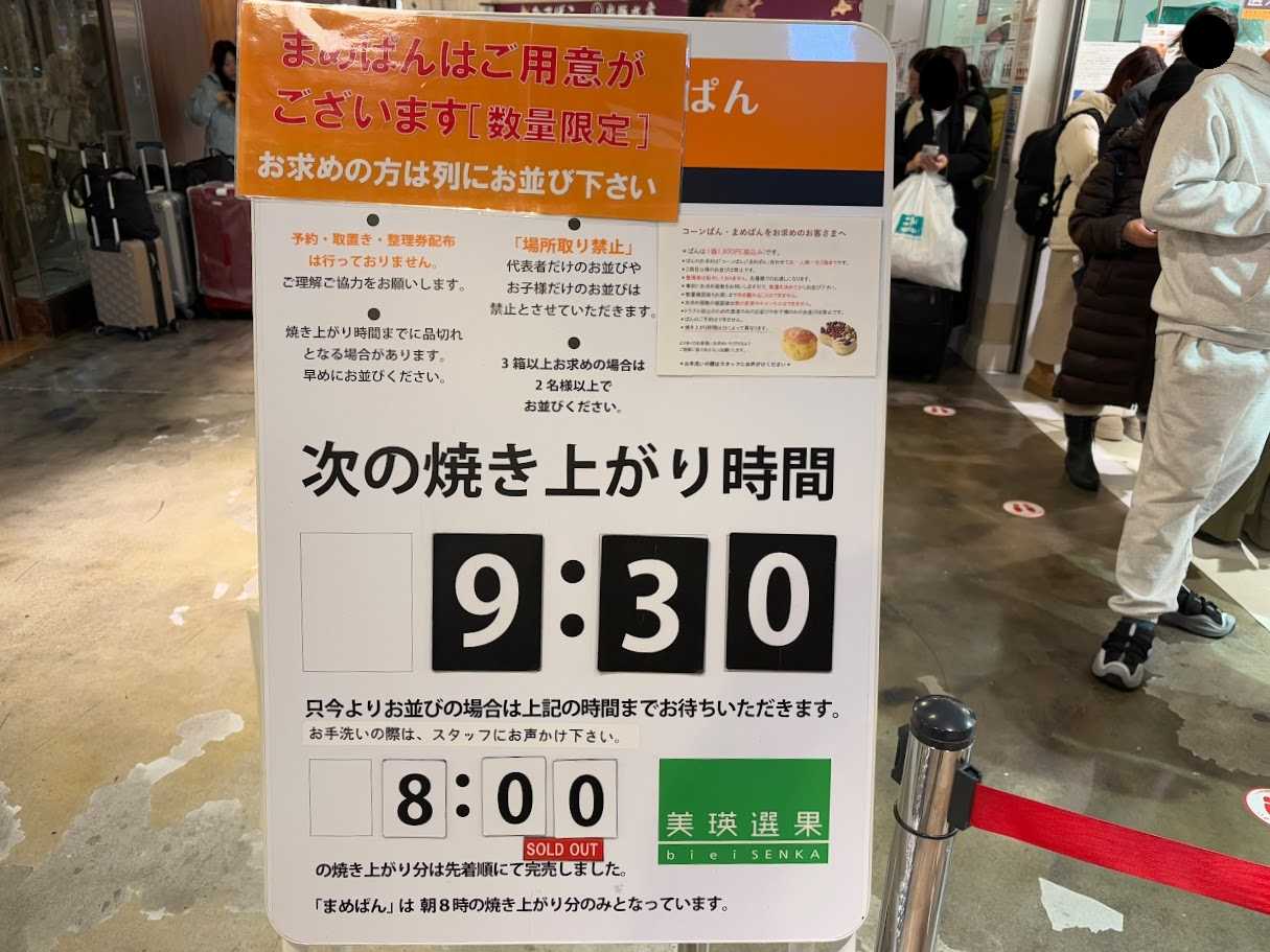 次回の焼き上がりは店頭に表示されているので、それを見て列に並ぶかどうか決めましょう。