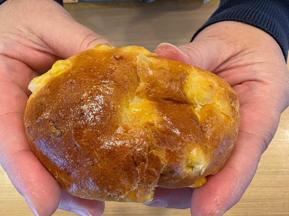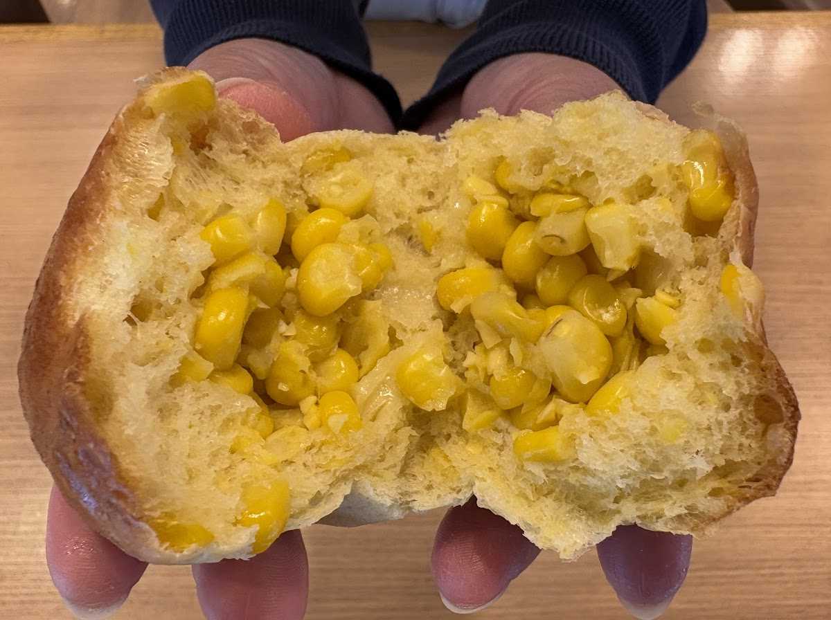 スイートコーンが小麦粉の2倍以上使われている贅沢なパンなので、飽きの来ない味わいが大きな特徴です。