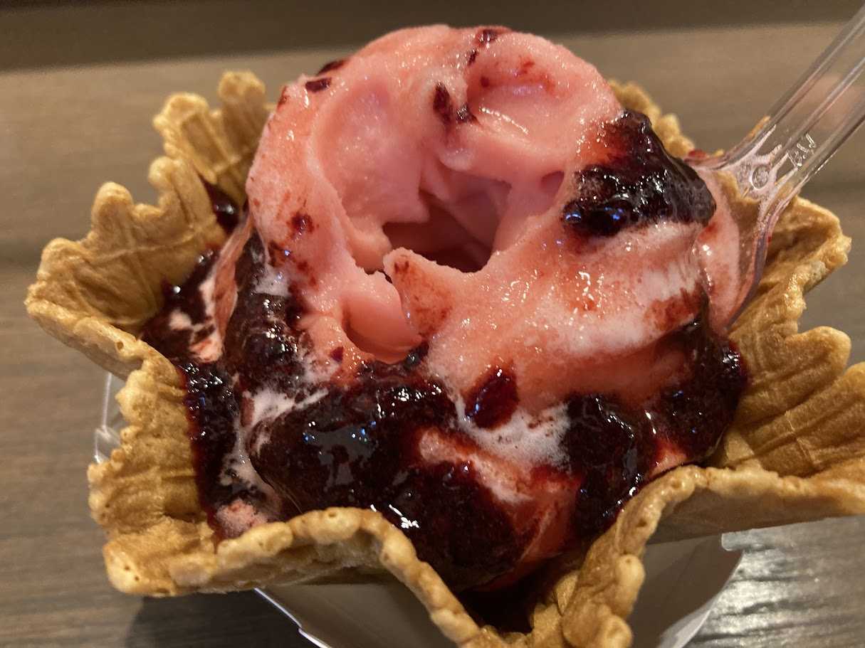 食感はシャリシャリ感が少し残るシャーベット感覚で、ハスカップの爽やかな酸味が脳天を直撃!
