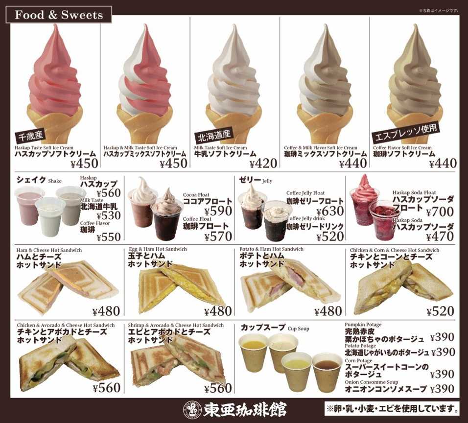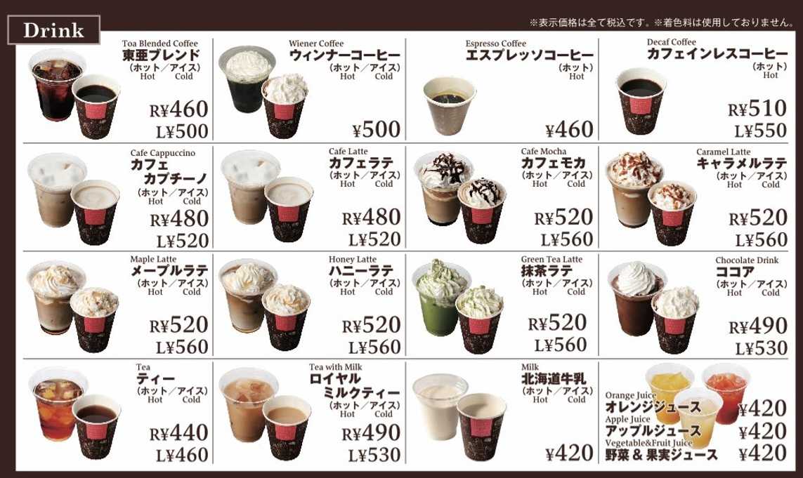 東亜珈琲館 新千歳空港店のメニュー料金