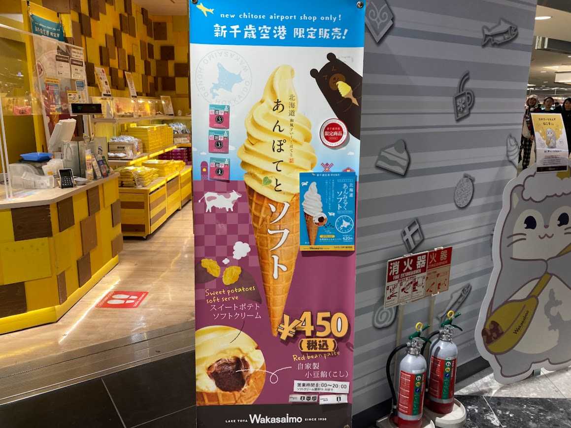 わかさいも(新千歳空港)おすすめ人気①あんぽてとソフト(空港限定)